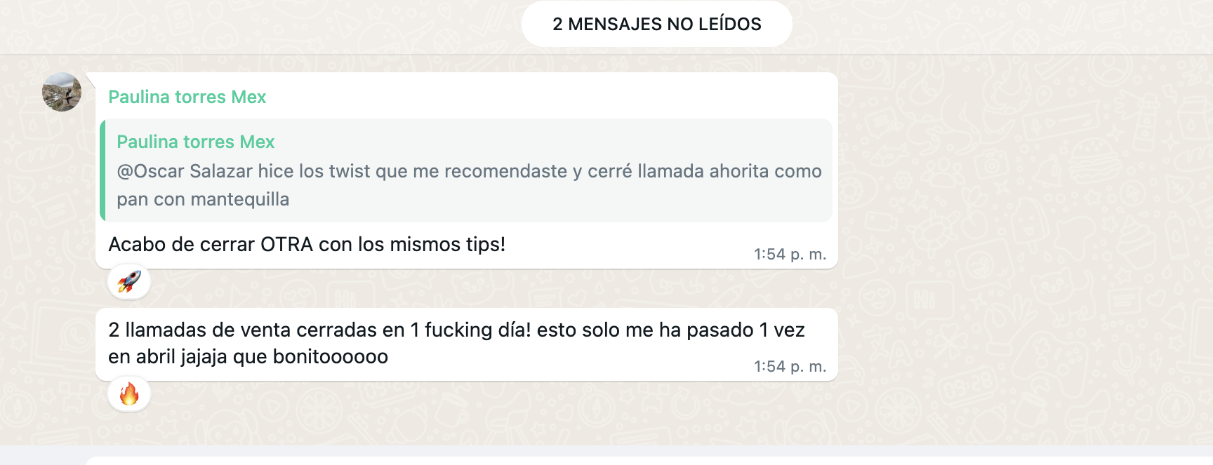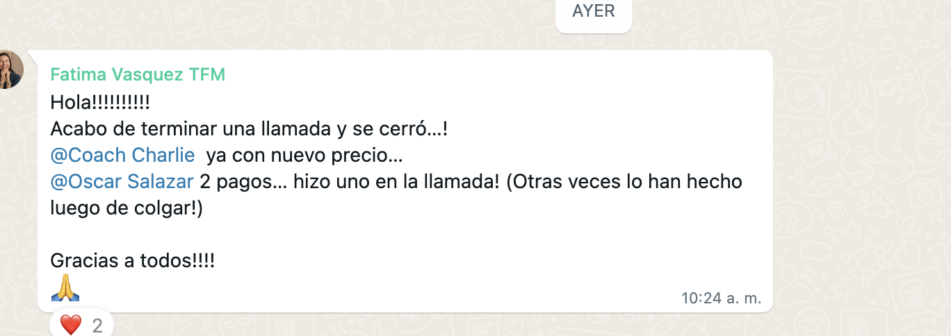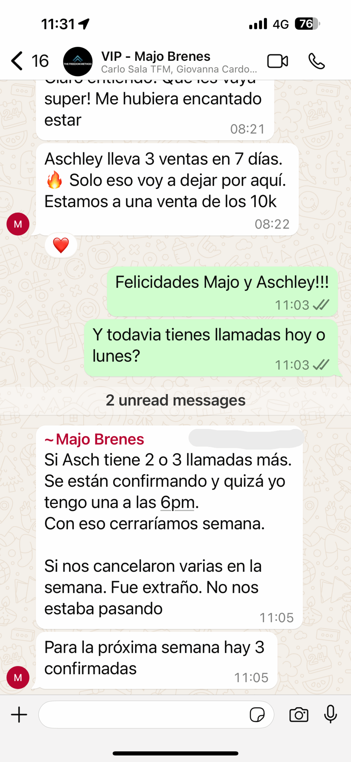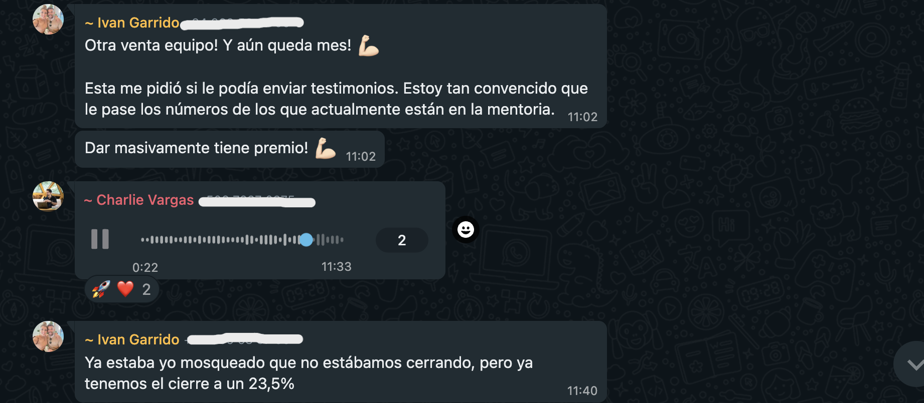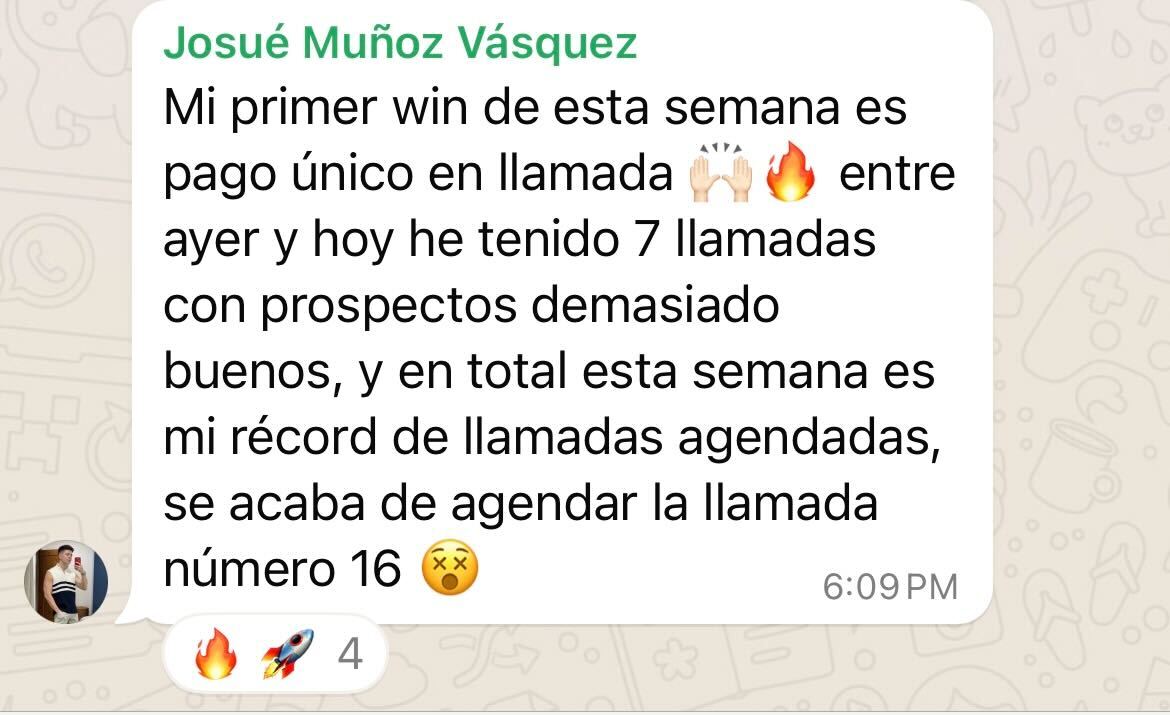 ↘ Llamadas 1:1 de seguimiento y capacitación grupal diaria (prospeccion,