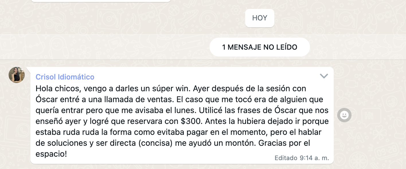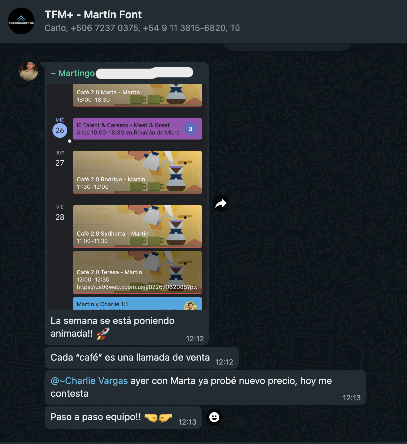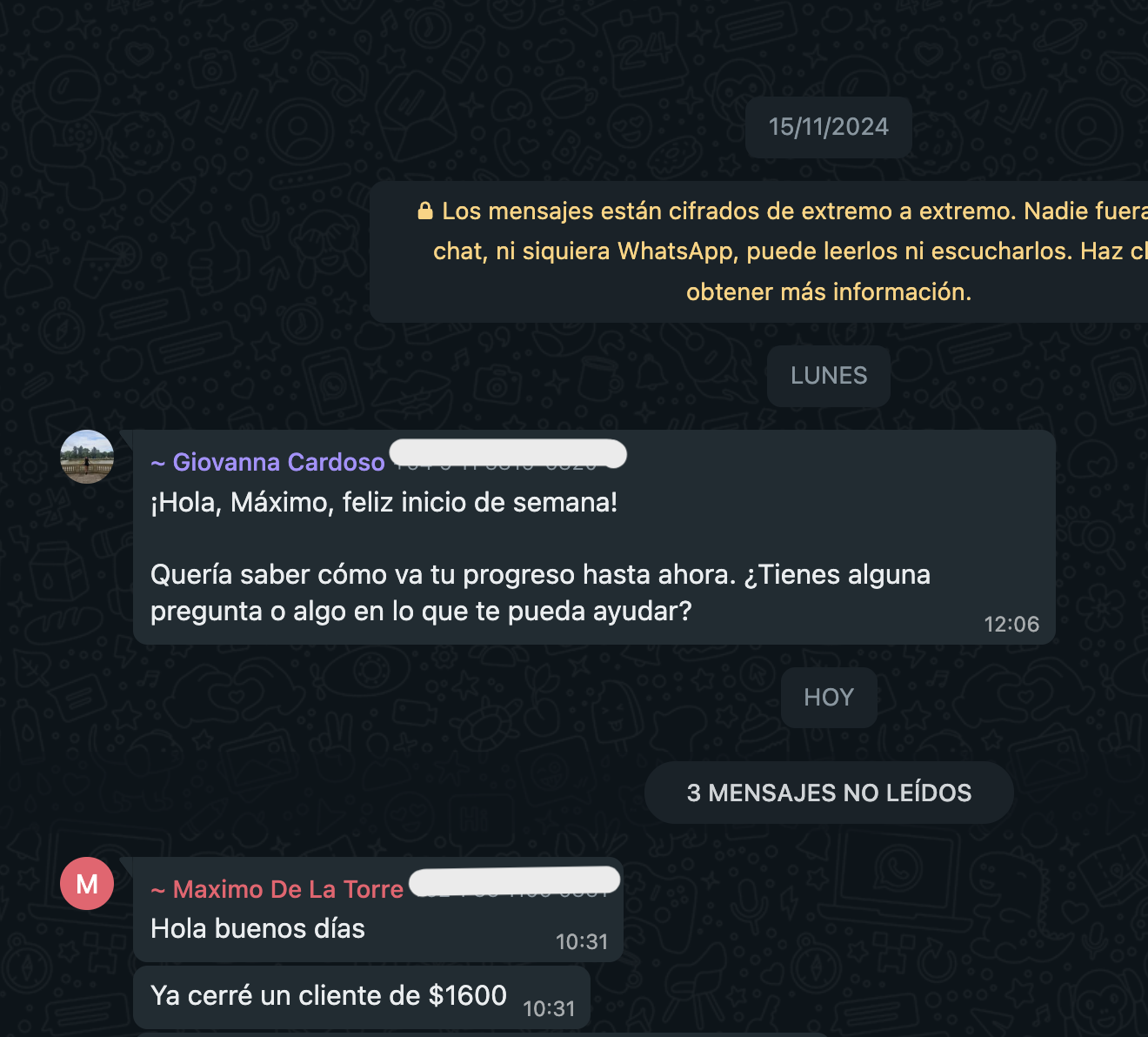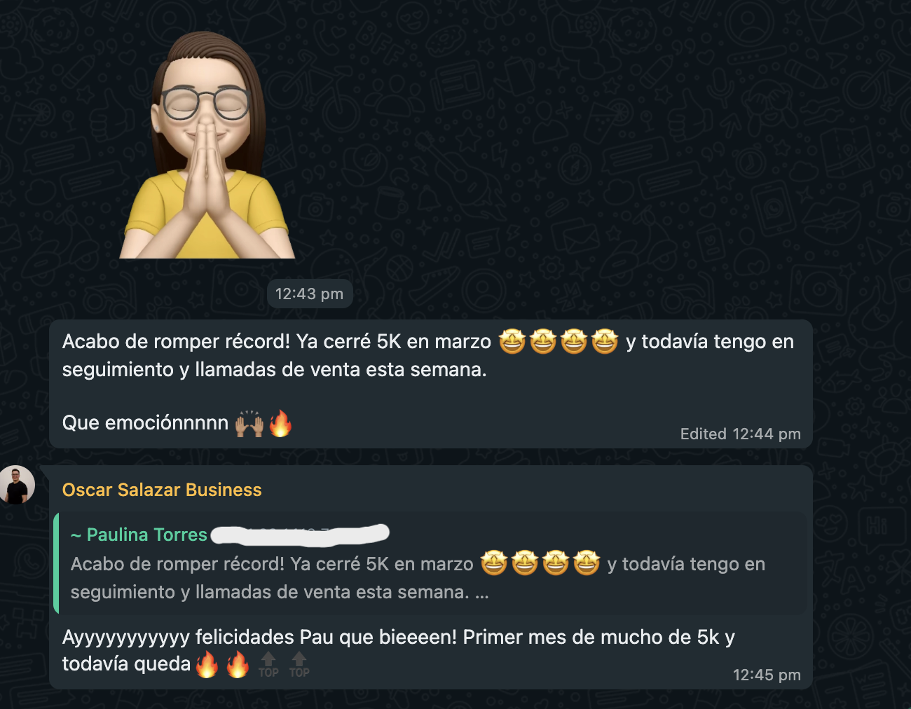 ↘ Llamadas 1:1 de seguimiento y capacitación grupal diaria (prospeccion,