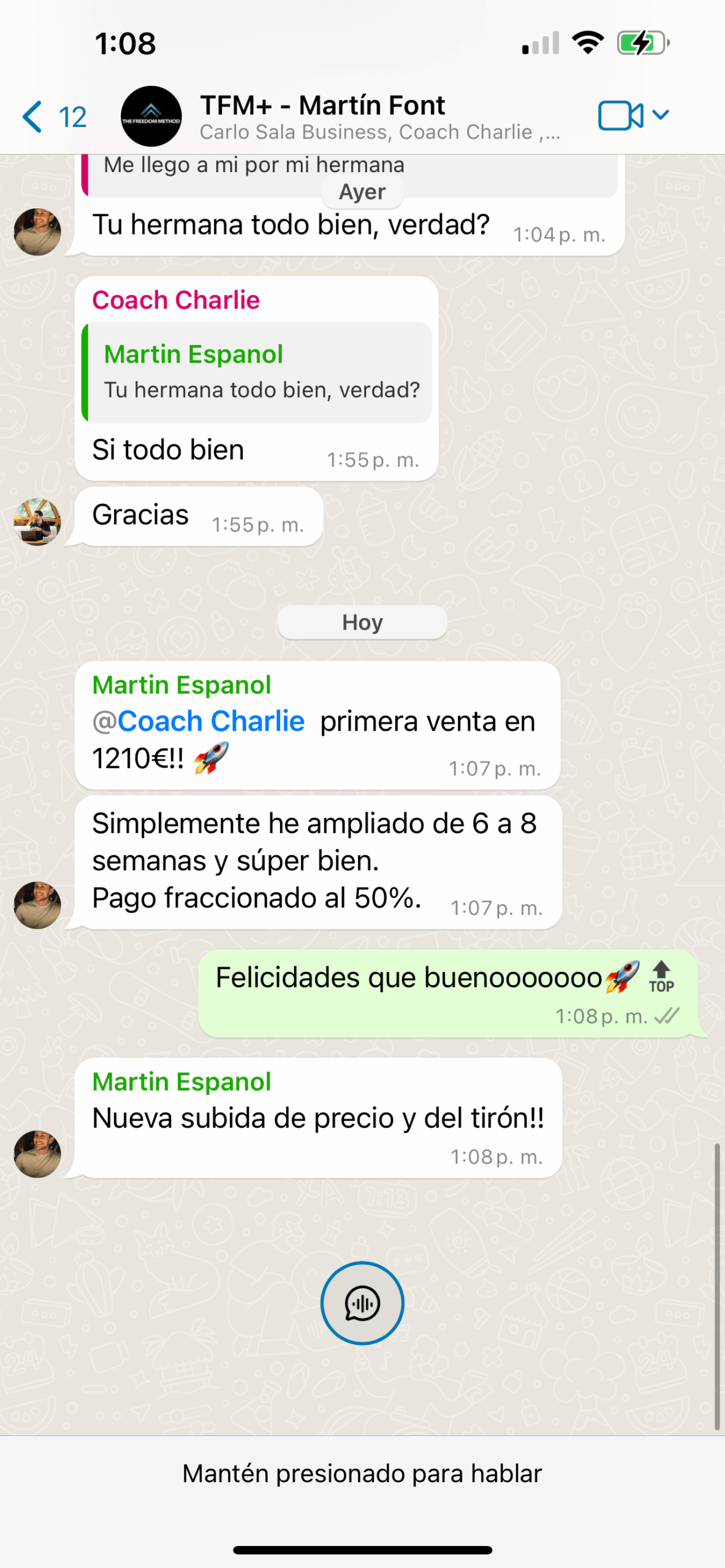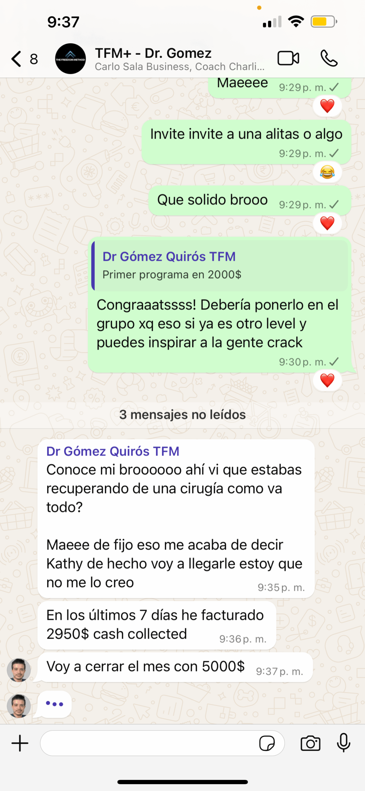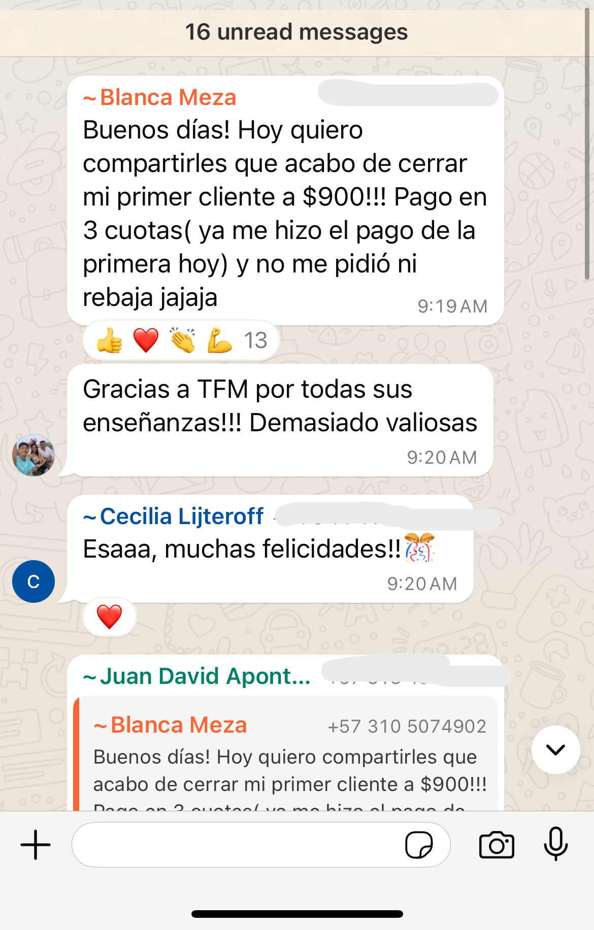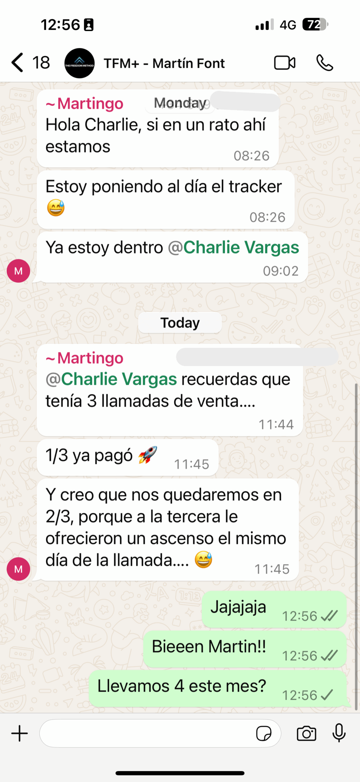 TFM+ es nuestro programa para negocios que ya tienen ingresos constantes y quieren aprender a facturar más de $10K todos los meses.